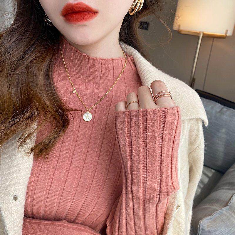半高领套头毛衣女紧身韩版秋冬新款打底衫长袖修身纯色上衣针织衫