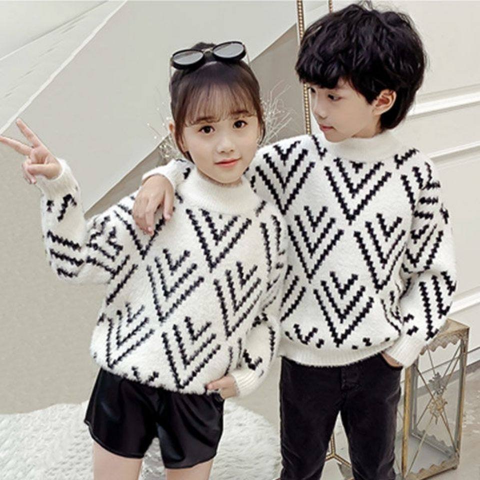 26新款男女童同款防水貂绒秋冬季新款加厚韩版套头毛衣儿童半高领