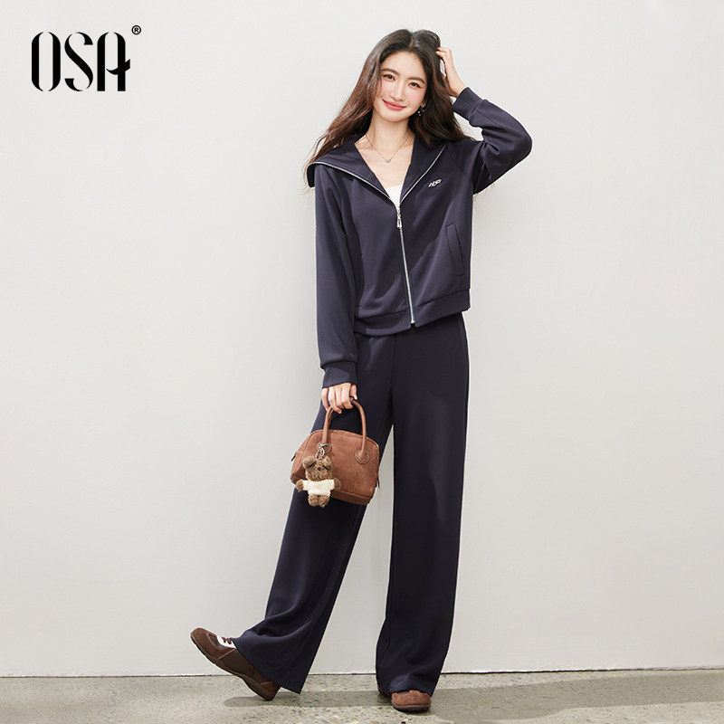OSA欧莎松弛休闲套装女2025秋新款短外套直筒长裤修身显瘦一整套