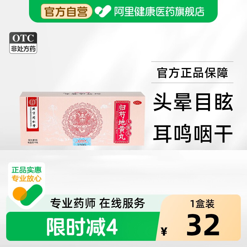 同仁堂归芍地黄丸丸剂北京同仁堂失眠头晕官方正品旗舰店浓缩肝肾