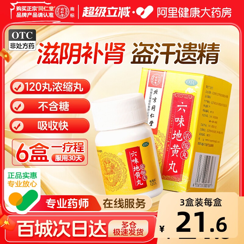 同仁堂六味地黄丸浓缩120丸北京同仁堂盗汗肾虚补肾药房非片肾丸