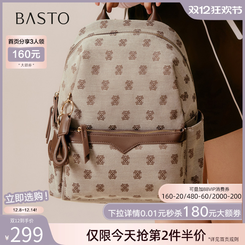 百思图25秋季商场新款时尚通勤双肩背包复古休闲旅行女包TY039CX5