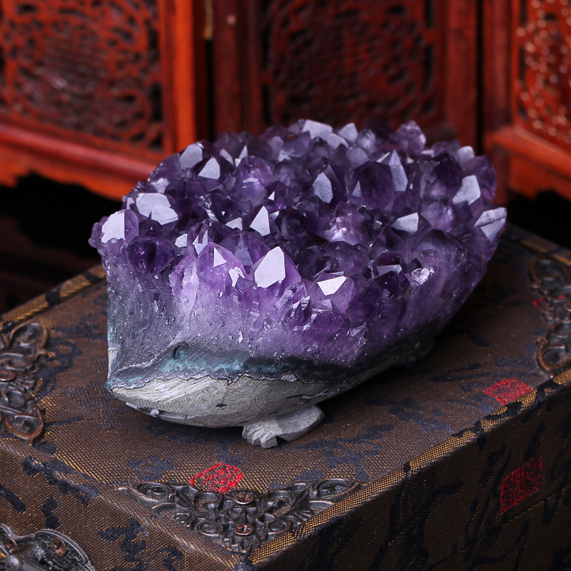 天然水晶紫晶簇摆件紫水晶洞片家居饰品紫晶簇水晶族消磁水晶镇宅