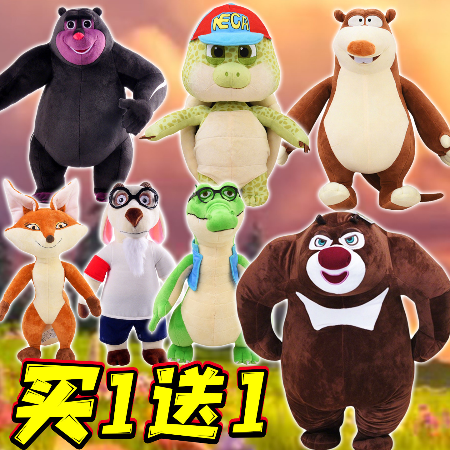 熊出没熊大熊二毛绒玩具光头强公仔套装娃娃团子熊熊乐园儿童礼物