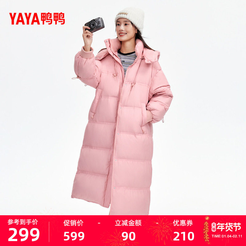 鸭鸭YAYA鸭鸭羽绒服女冬季长款宽松风设计感加厚气质过膝连帽外套