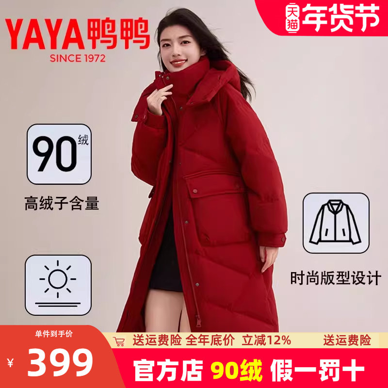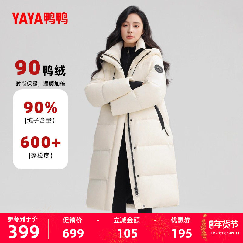 鸭鸭YAYA长款羽绒服女冬季过膝加厚韩版大被子90鸭绒气质宽松外套