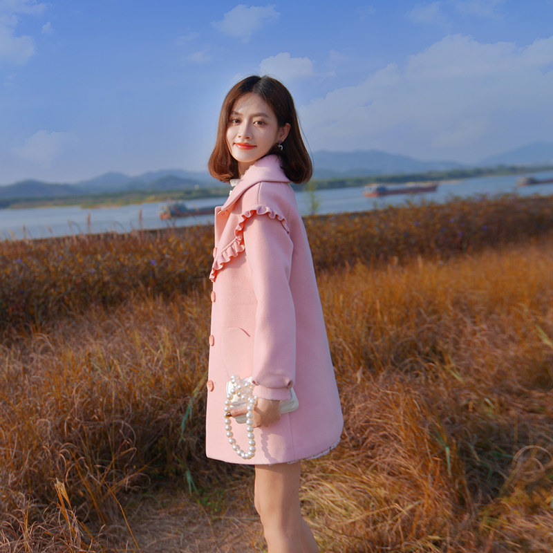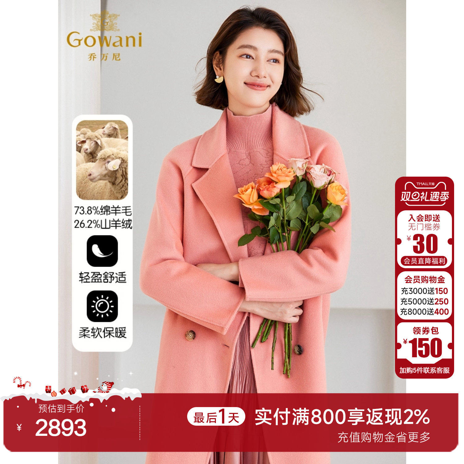 【现货】桃夭粉20山羊绒羊毛80新款101801双面羊绒大衣女毛呢外套