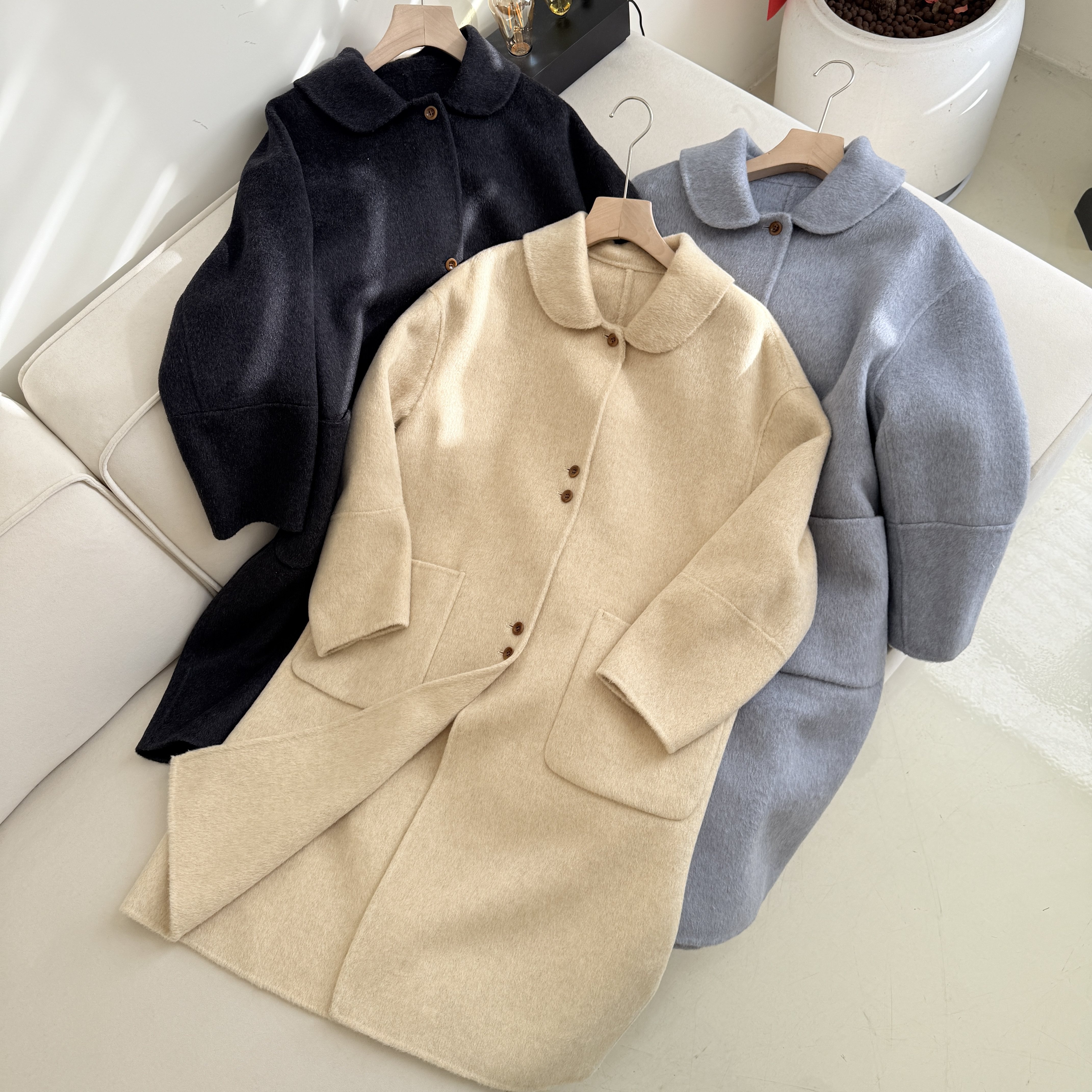 虫小小 羊驼毛羊毛翻领双面呢中长款大衣女毛呢外套2025冬季A83Q