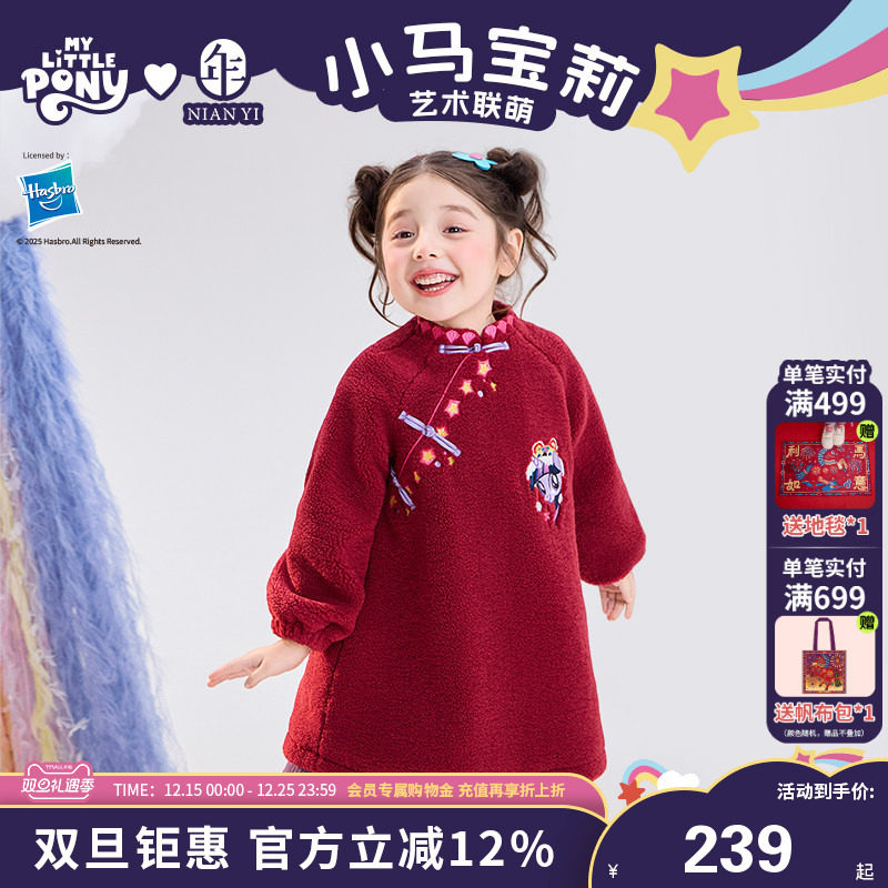 小马宝莉联名年衣童装儿童旗袍裙冬季款女童新中式加厚连衣裙礼服