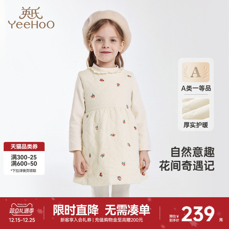 【商场同款】英氏女童裙子冬季加厚背心裙小女孩可爱连衣裙A字裙
