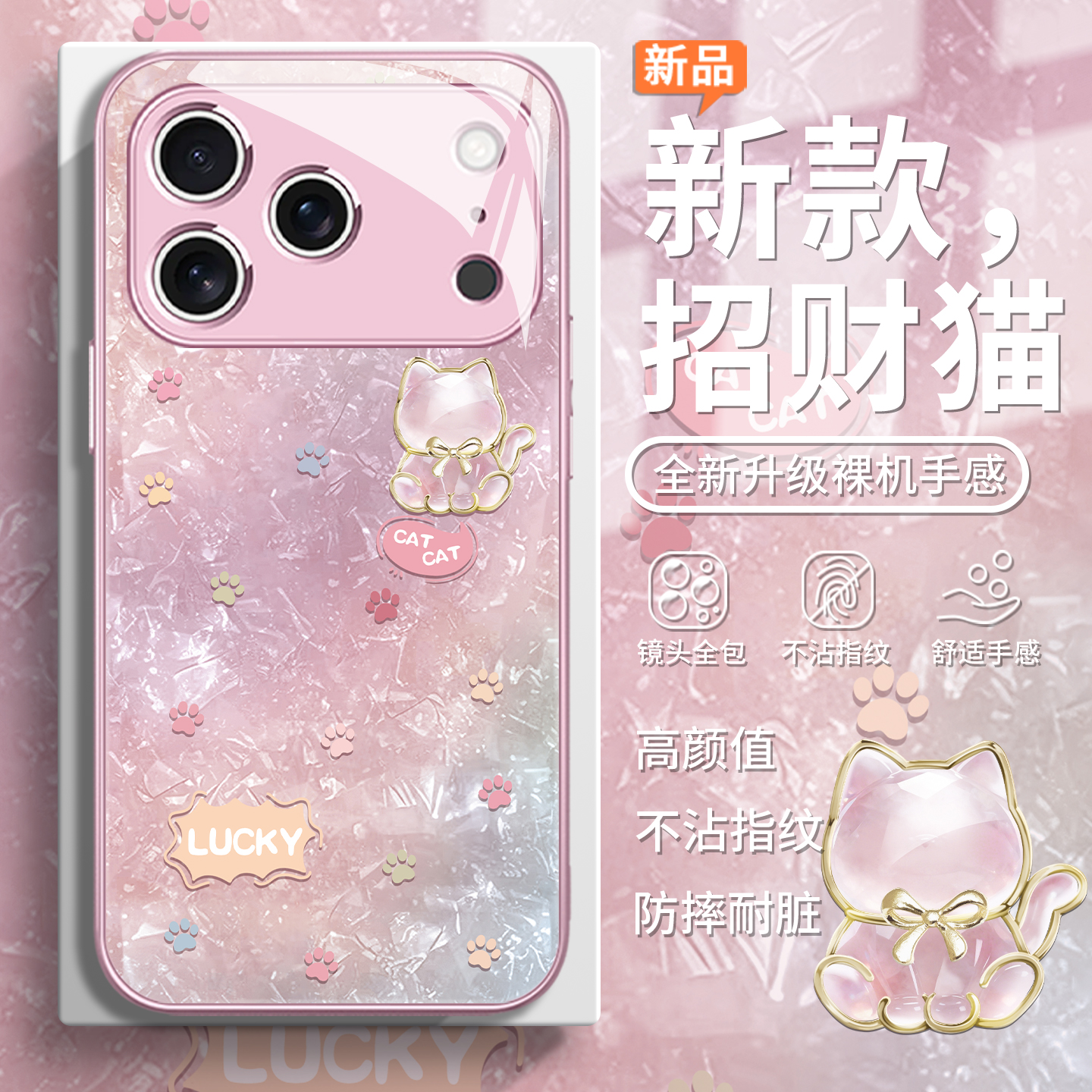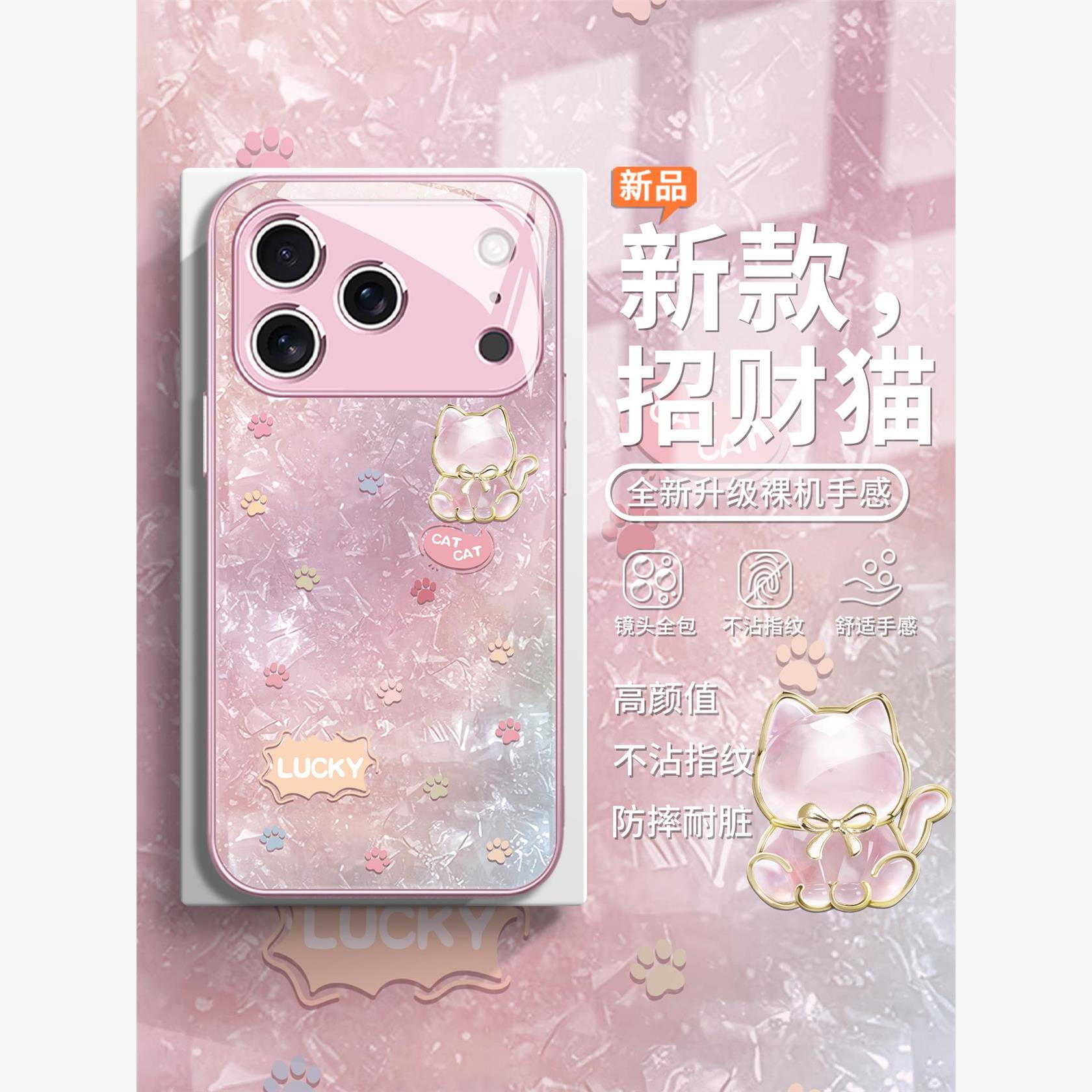 适用苹果16promax手机壳新款iphone15pro玻璃14防摔13可爱女12网红xsmax招财猫8plus专用7p高级感6s全包se2潮