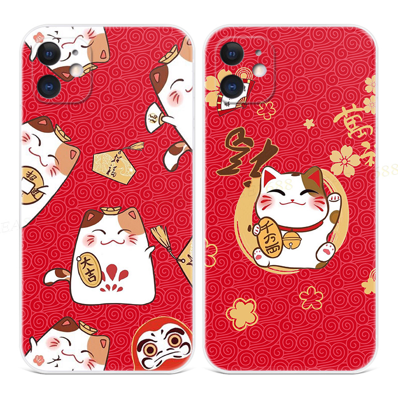 新年招财猫适用iPhone13手机壳12Pro max硅胶11苹果15红色14龙年xsmax保护套xr喜庆x本命年7plus女8p男6s过年