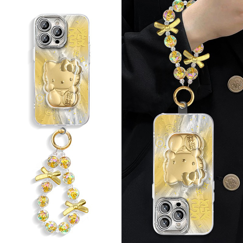 招财猫适用苹果14promax/15/7/8/6/6s plus/13pro/12/11手机壳5se男女情侣款腕带软套iphone x/xsmax/xr