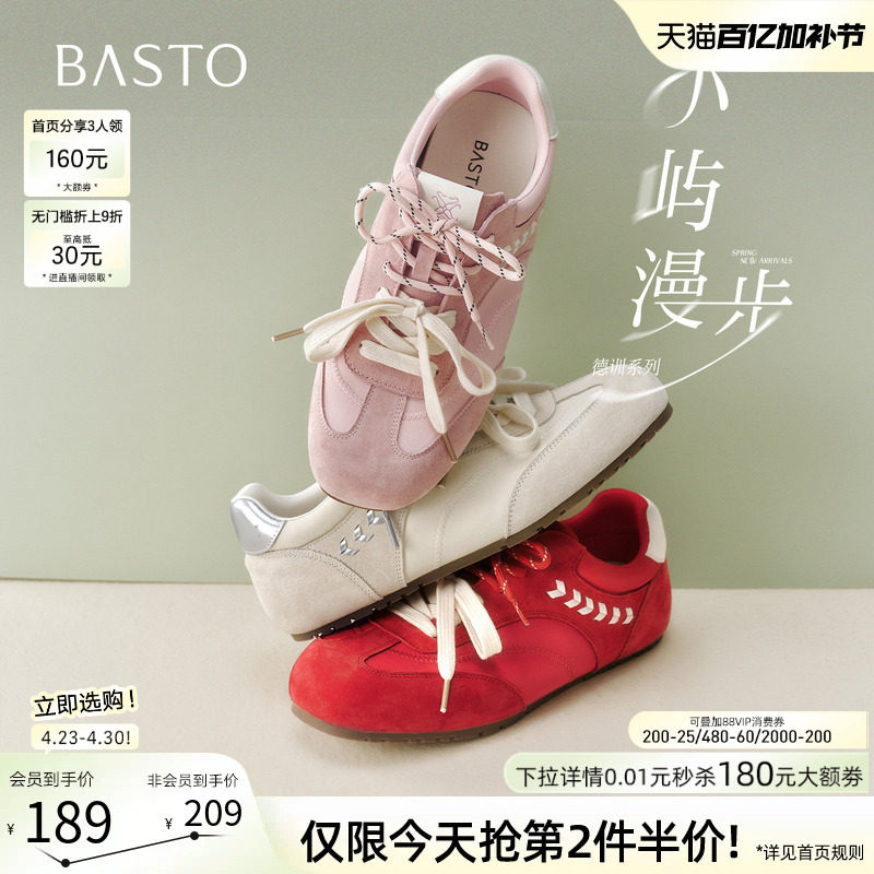 百思图2026夏季新款复古内增高德训鞋跑步鞋运动休闲女鞋WX701AM6