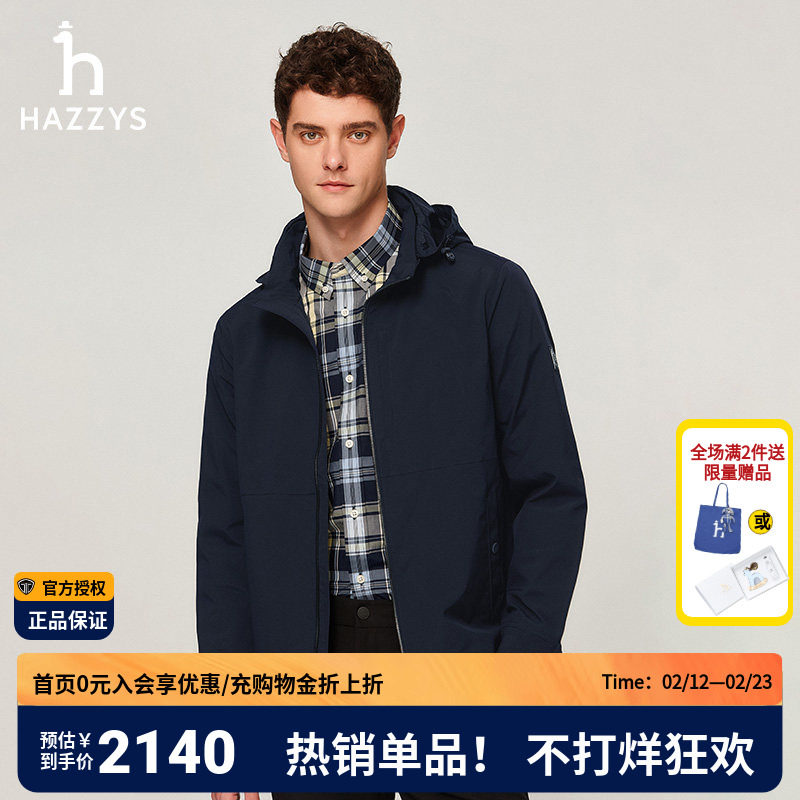 哈吉斯hazzys官方正品新款夹克男装纯色长袖休闲春秋季上衣外套男