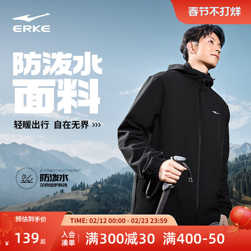 鸿星尔克外套男冬季男士软壳冲锋加绒风衣运动防泼水夹克男装上衣