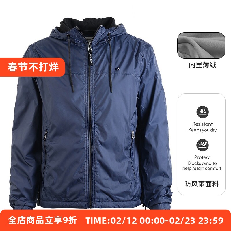 calvin klein卡尔文克莱恩ck外套男士连帽薄绒软壳夹克男装冲锋衣