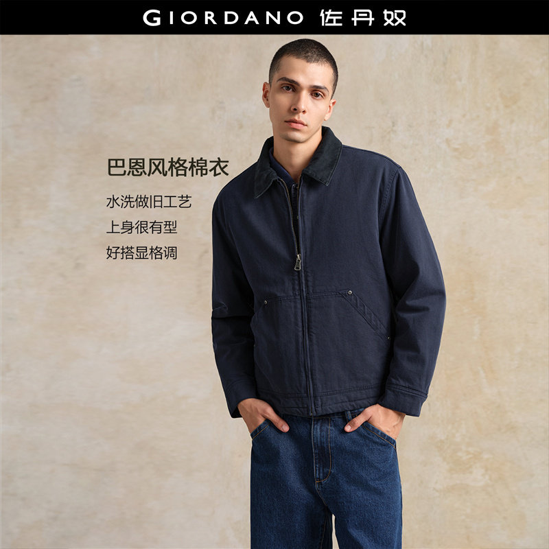 设计师款佐丹奴棉服夹克男装纯棉巴恩风撞色翻领棉衣外套18075818