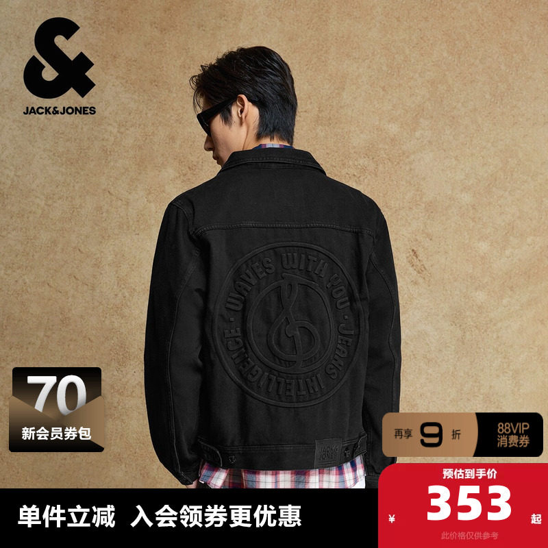 杰克琼斯奥特莱斯夹克男装秋季外套钢印压花宽松休闲纯色牛仔外套