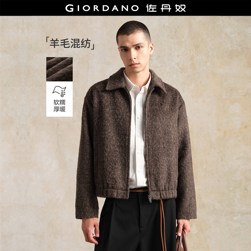 设计师款佐丹奴羊毛绒感夹克男装毛呢宽松翻领休闲外套18075824