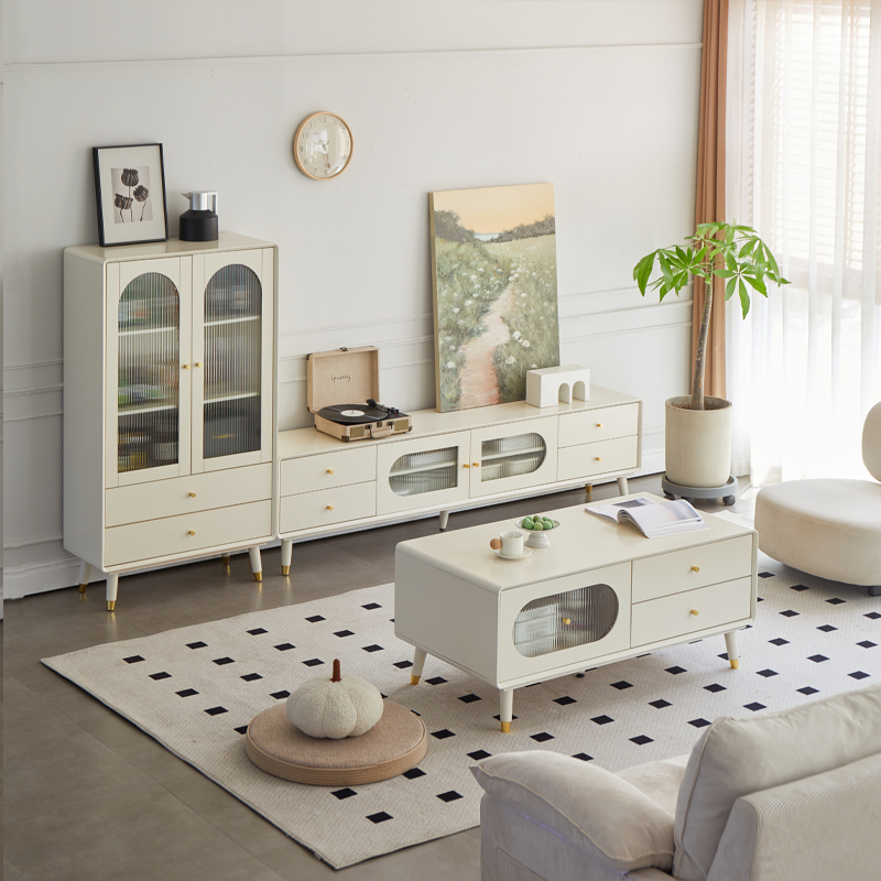 法式奶油风落地茶几电视柜组合现代简约客厅边柜定制小户型D90