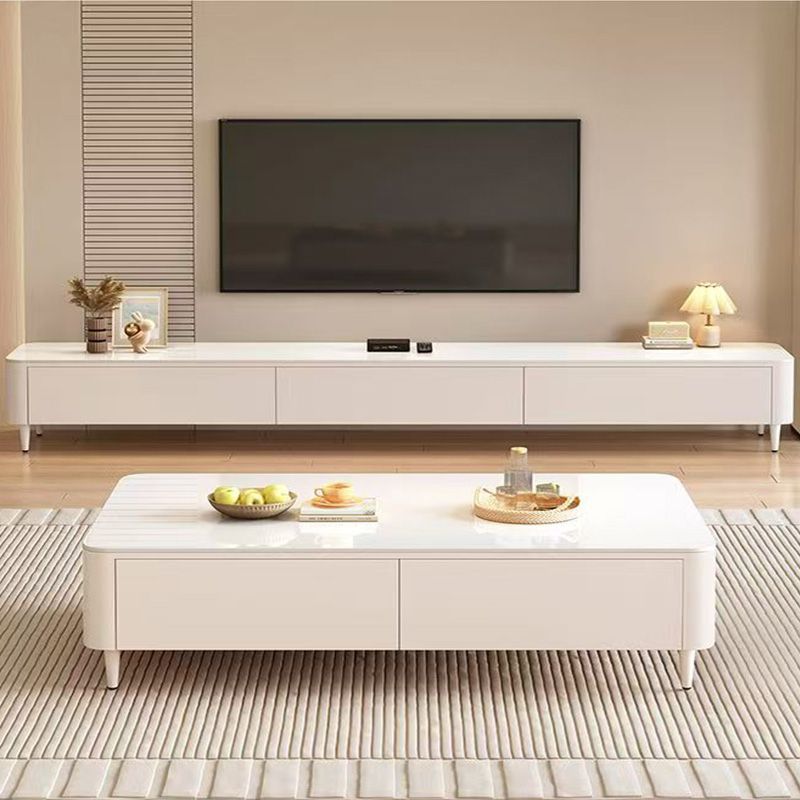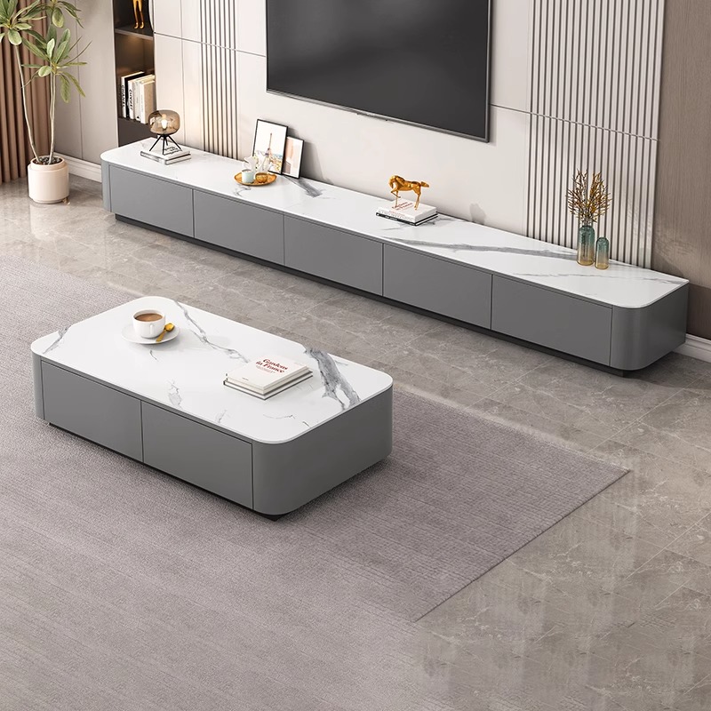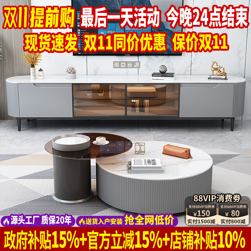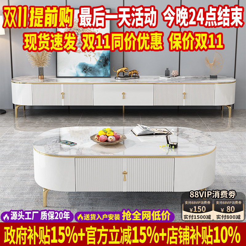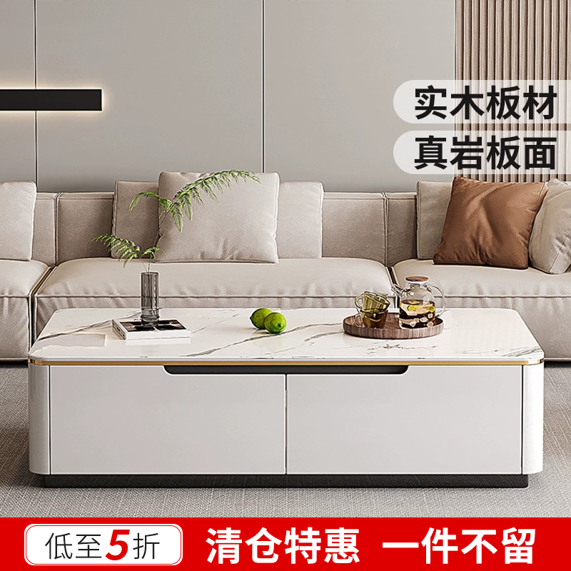 轻奢茶几电视柜组合亮光岩板小户型可伸缩简约带抽屉茶几家用客厅