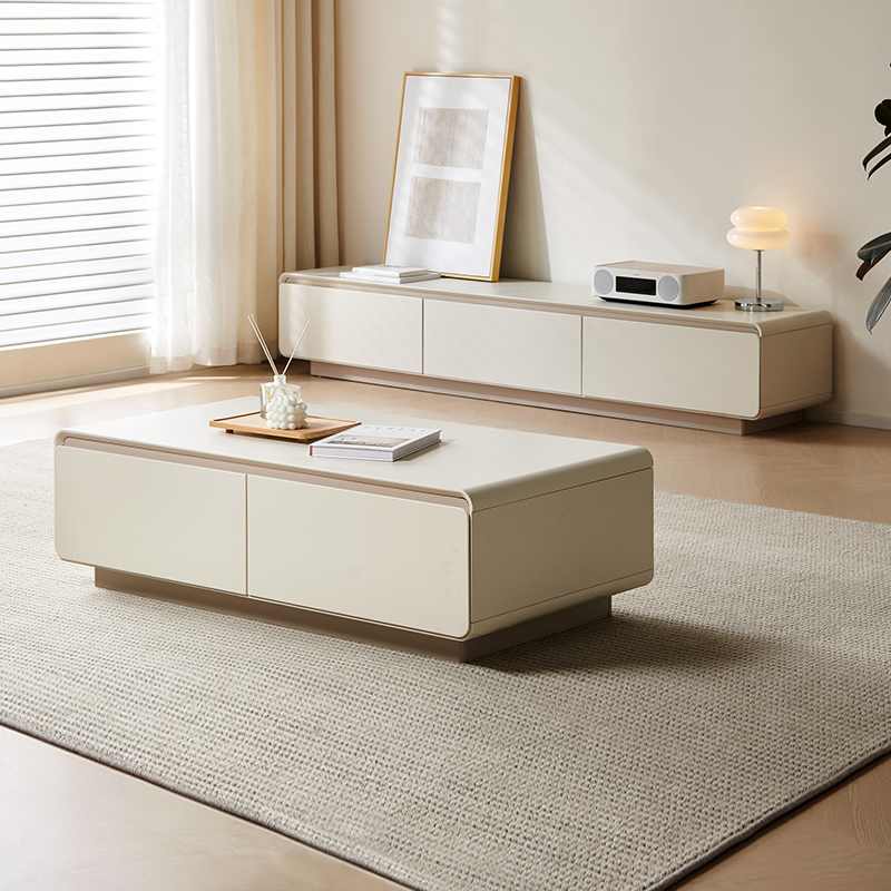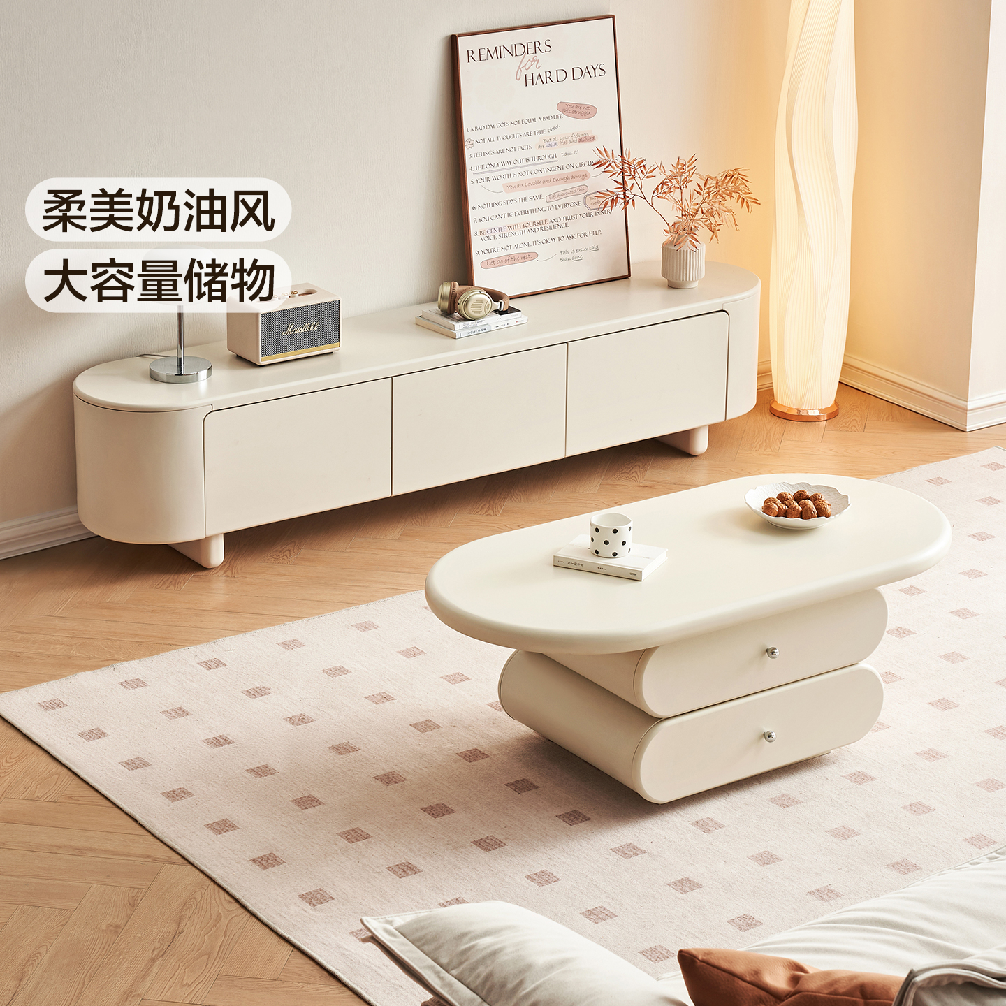 洛诺奶油风玻璃大小茶几电视柜组合侘寂风设计师款客厅家用小户型