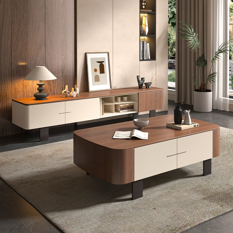 中古风实木茶几电视柜组合2025新款北美黑胡桃木茶几电视柜可储物