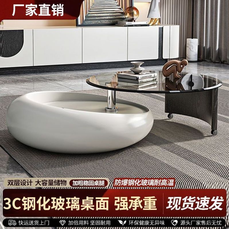 2025年新款轻奢岩板茶几电视柜现代简约大小圆茶几小户型客厅家用