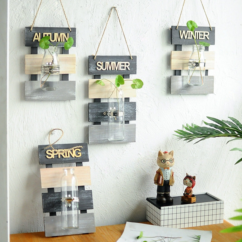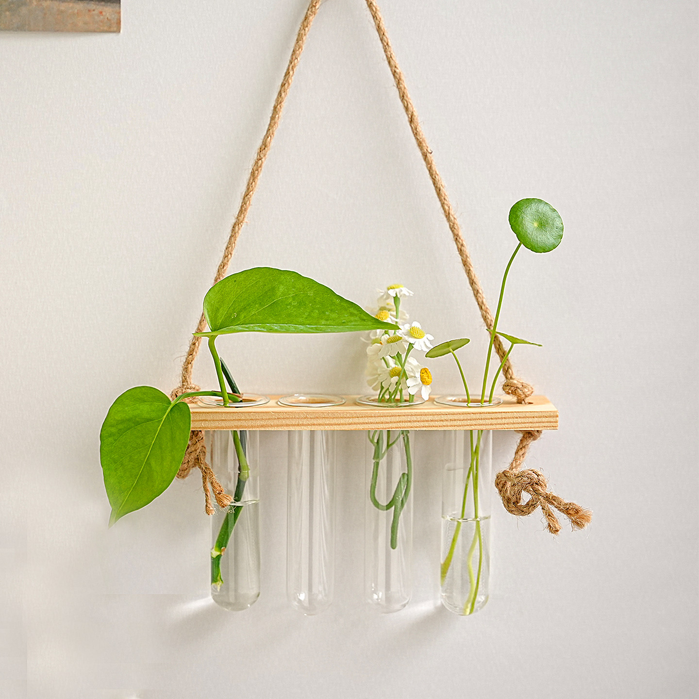 实木玻璃试管花瓶壁挂水培器皿小型绿植插花花器个性墙面装饰挂饰