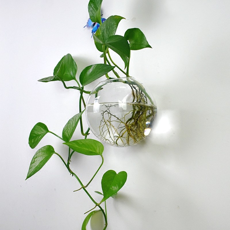 墙上绿萝植物花盆透明水养插花创意客厅墙面装饰花器壁挂水培花瓶