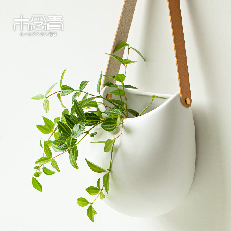 LENYVASEN小众陶瓷壁挂水培花瓶挂墙免打孔简约插花阳台绿植花盆