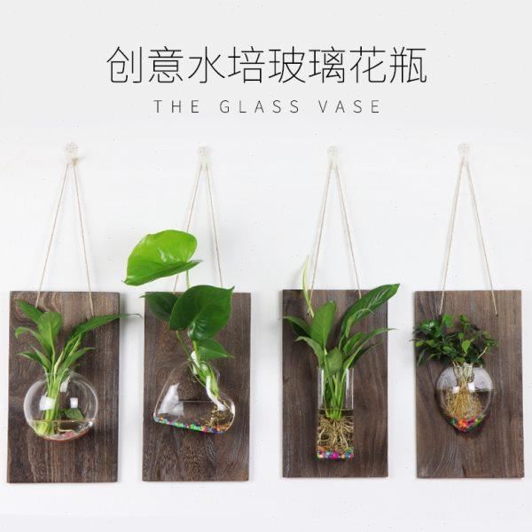 创意壁挂水培花瓶玻璃透明水养墙上花盆家居客厅实木墙面装饰挂件
