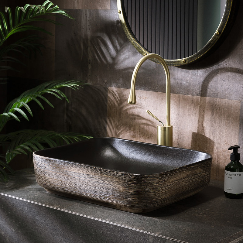 酒店台上盆阳台洗手漱盆棕色家用洗脸盆陶瓷面盆卫生间台盆长方形