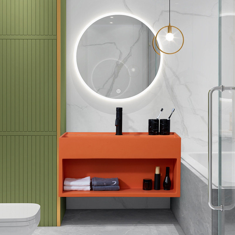 北欧人造石浴室柜组合洗手盆洗脸柜挂壁式挂墙式卫生间台盆柜橙色
