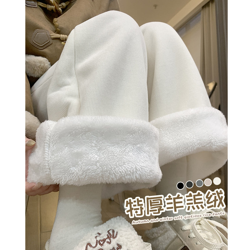 白色裤子女冬加绒糯米裤垂感窄版直筒醋酸羊毛阔腿裤加厚运动卫裤