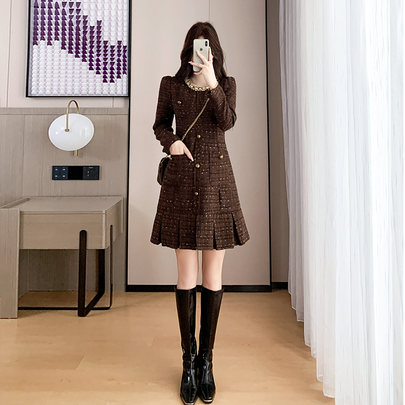 爵莱菲大码法式重工小香风连衣裙女2025年秋冬减龄粗花呢百褶裙