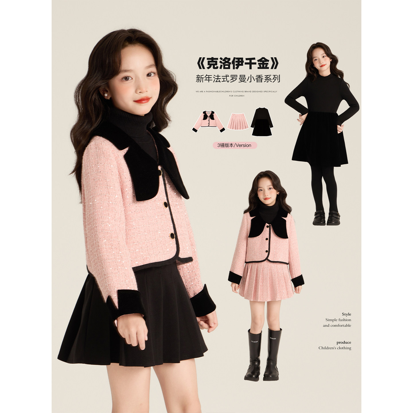 女童小香风套装秋冬季2025新款中大童时尚马甲百褶裙连衣裙两件套