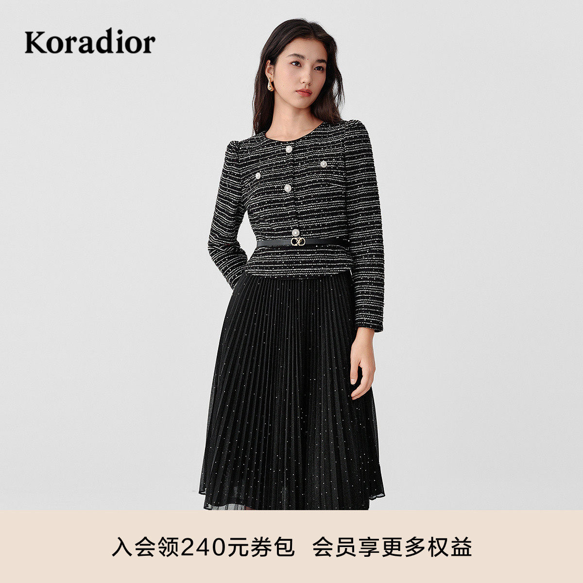 珂莱蒂尔2025年冬新款设计感拼接百褶连衣裙女通勤优雅修身裙装