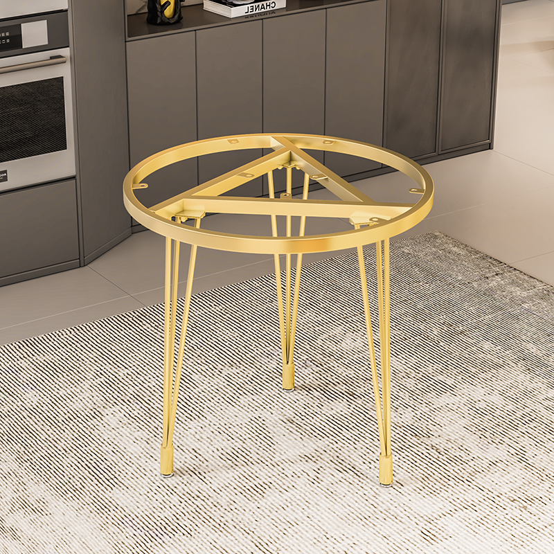 圆形餐桌底座奢石餐台脚岩板不锈钢圆桌腿支架圆形大X理石茶几支