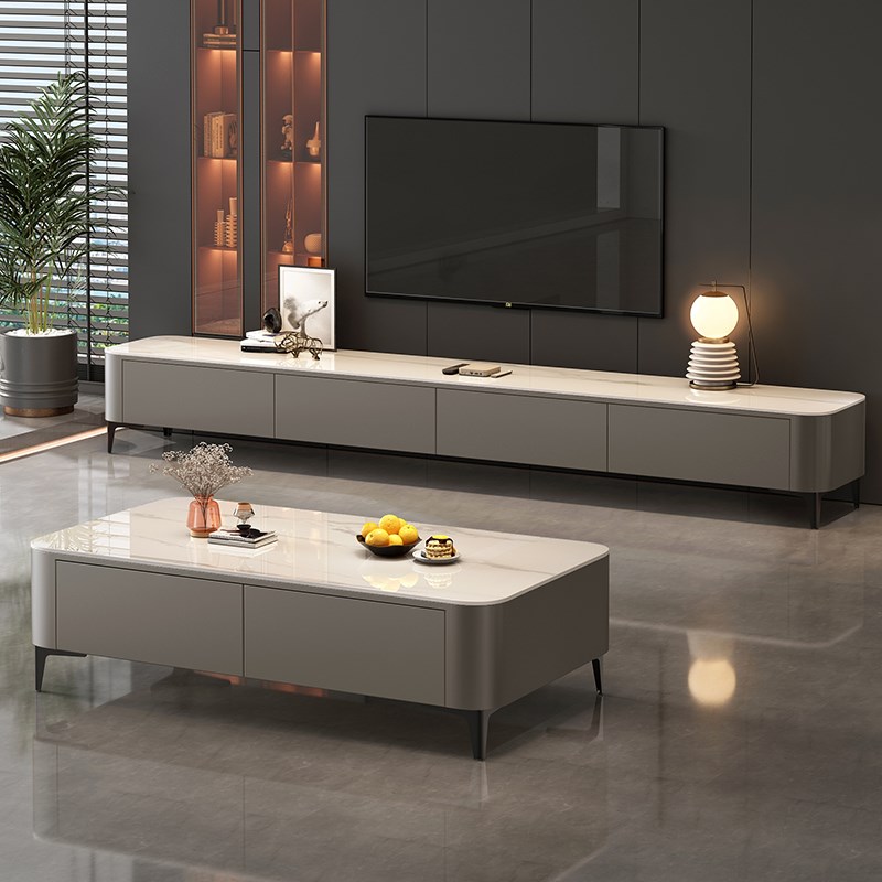 速发岩板柜理石茶几简视大组合客厅电约可伸缩地柜小户型电视机柜