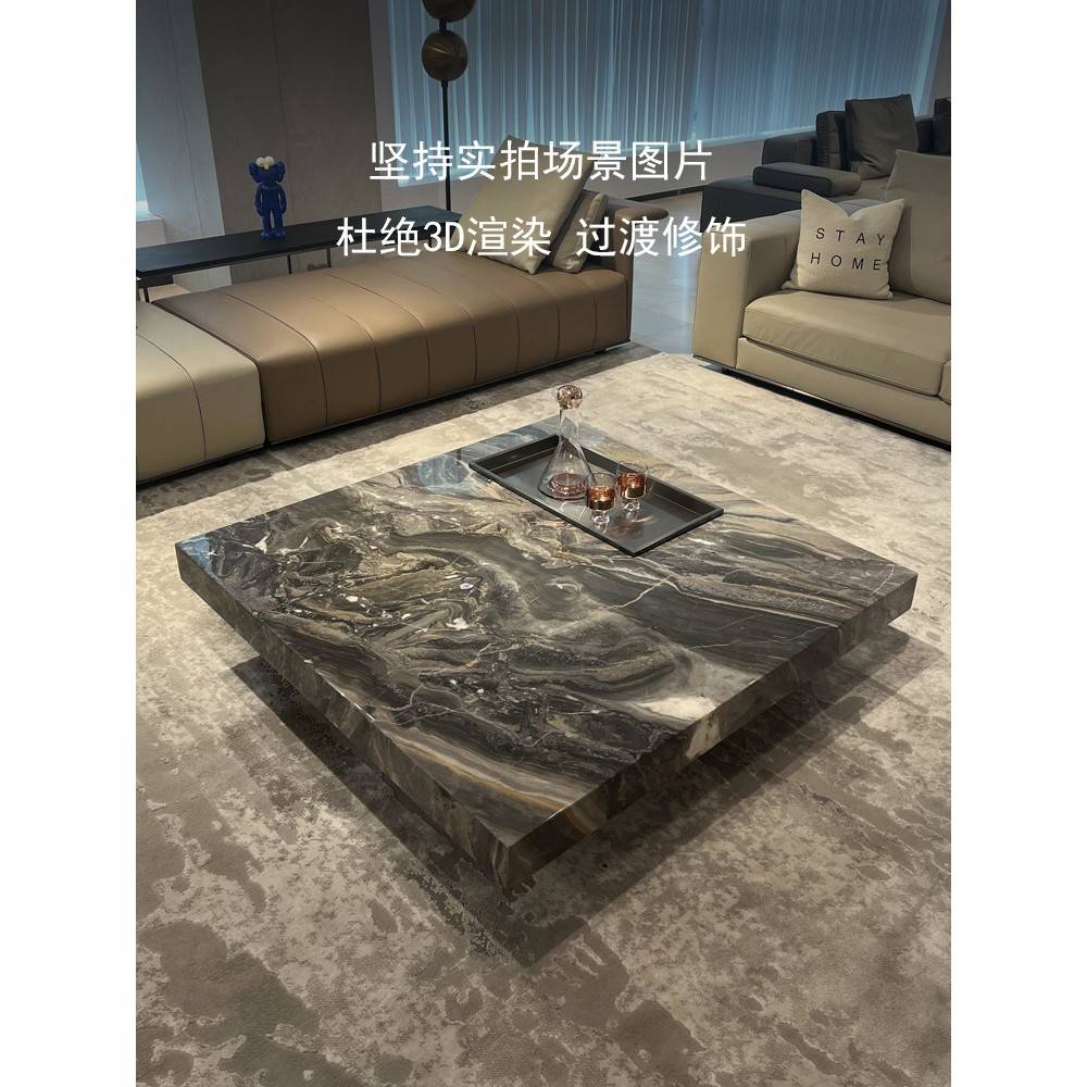 意大极2简奢板轻茶几尼斯新方棕理石式客岩厅2家用威形级感0高817