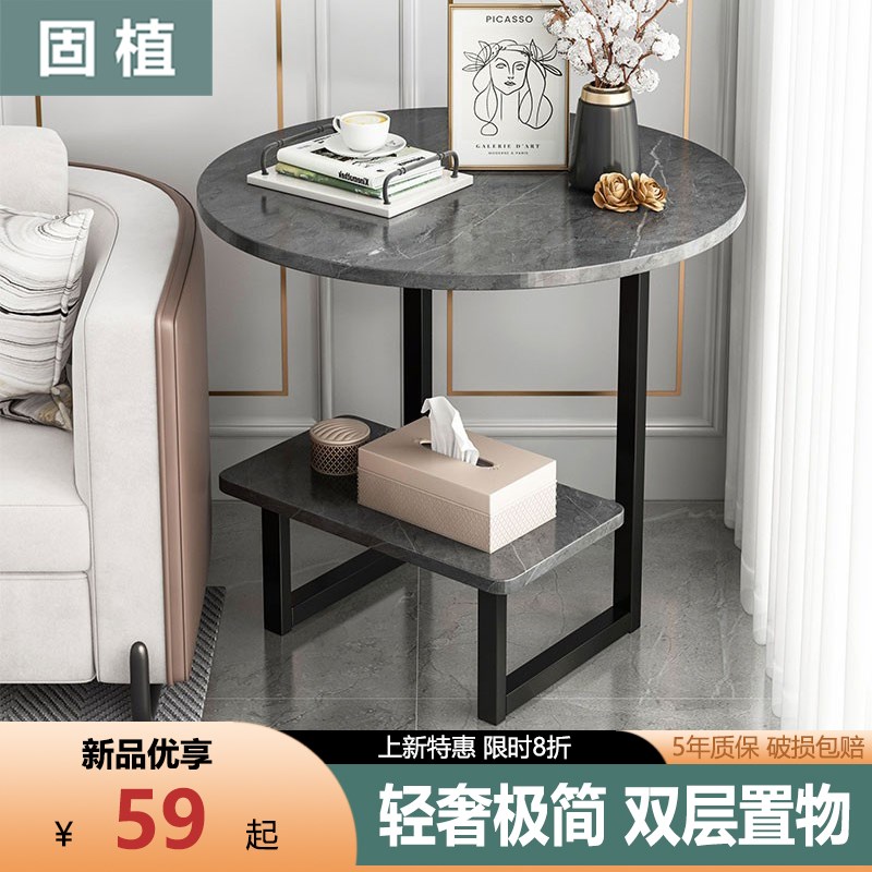 沙发边几家用摆件圆形理石纹路小茶几创意沙发阳台铁艺边桌小角几