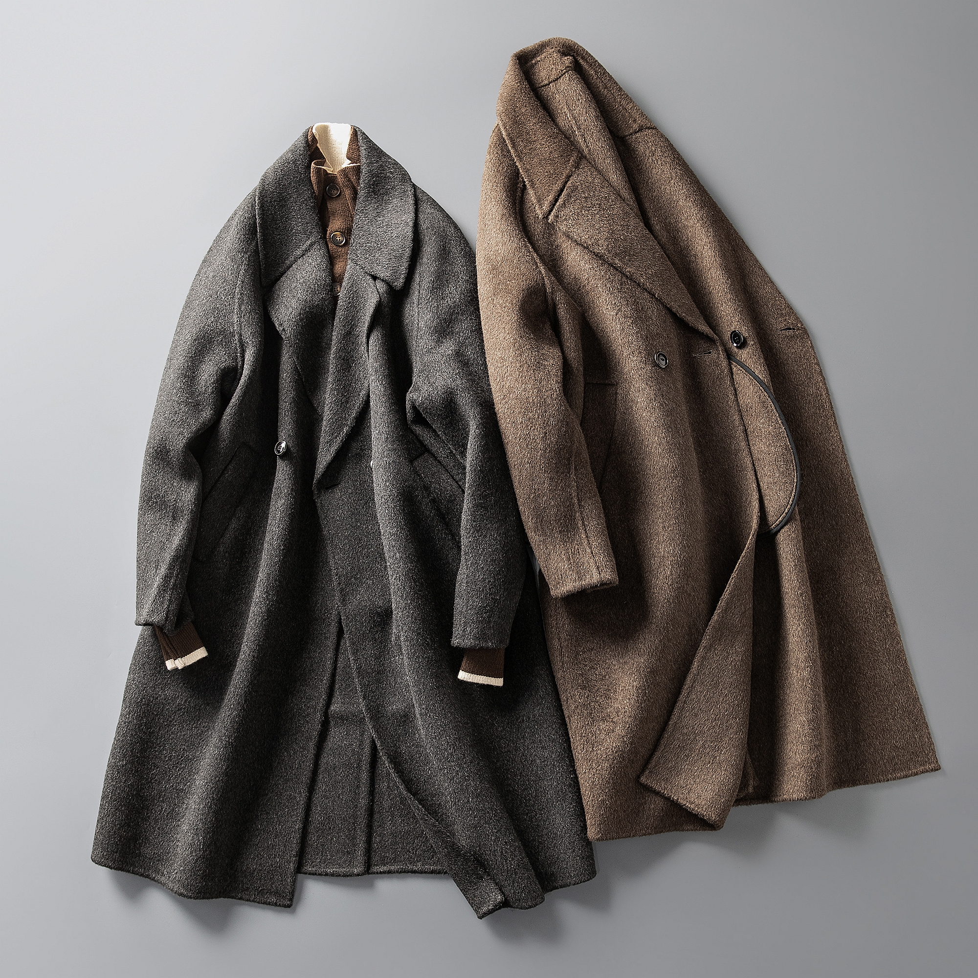 Acme cultum骆马绒羊毛手缝睡袍毛呢大衣男冬双面呢加厚长款外套