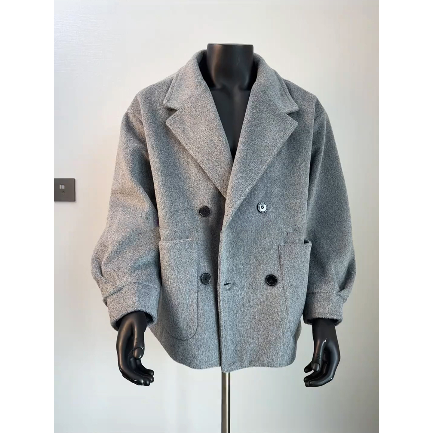 韩系高级感短款毛呢大衣男冬季加绒加厚夹克风衣双排扣西装领外套