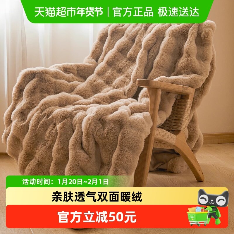 兔毛绒毛毯被子加厚办公室午睡毯珊瑚绒空调披肩沙发盖毯子床上用