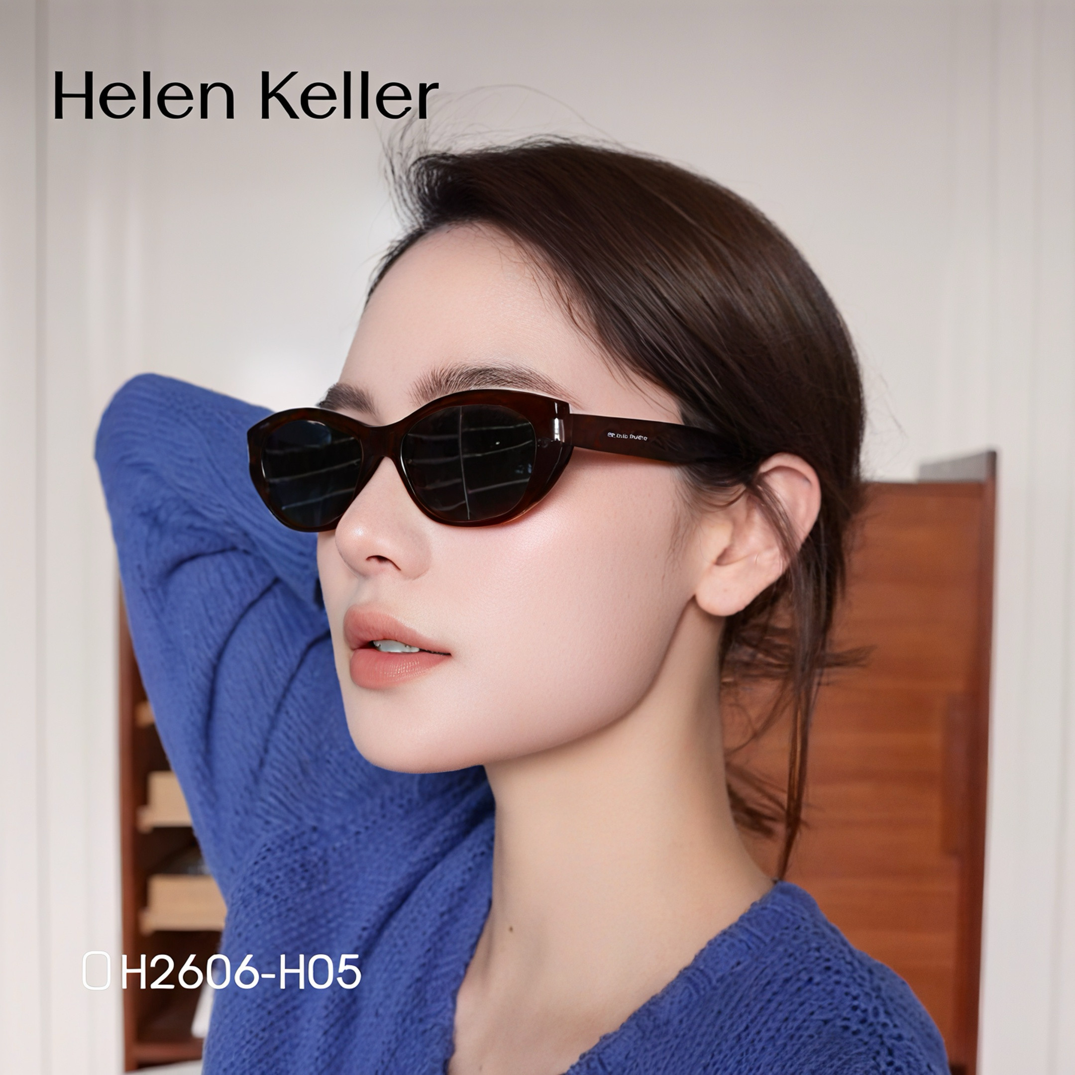 海伦凯勒墨镜女偏光防紫外线高级感大脸显瘦潮流ins太阳眼镜H8826