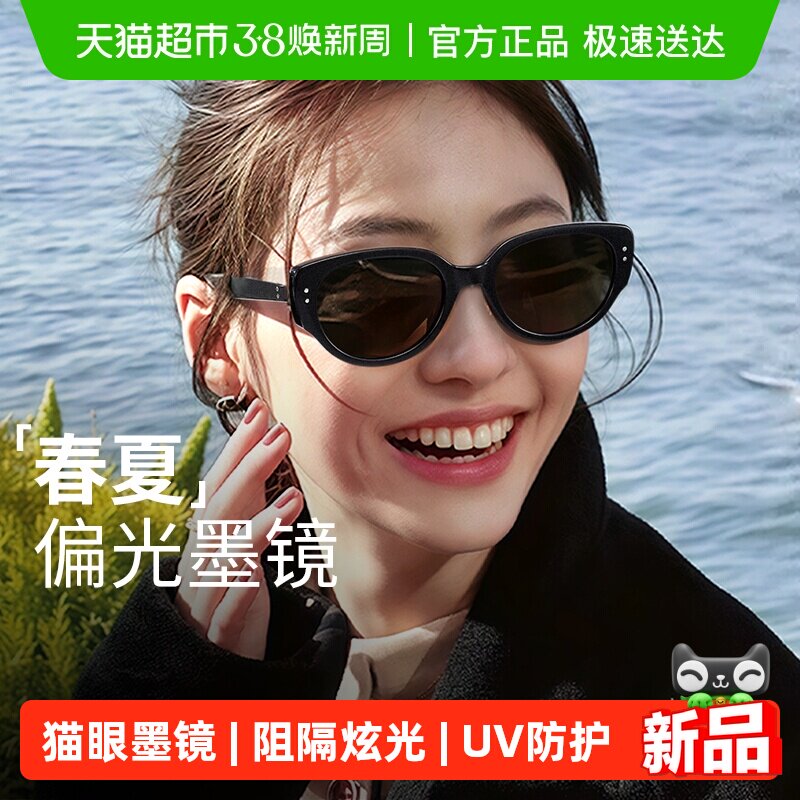 普莱斯高级感猫眼墨镜女偏光防紫外线2026新款防晒近视太阳镜男士