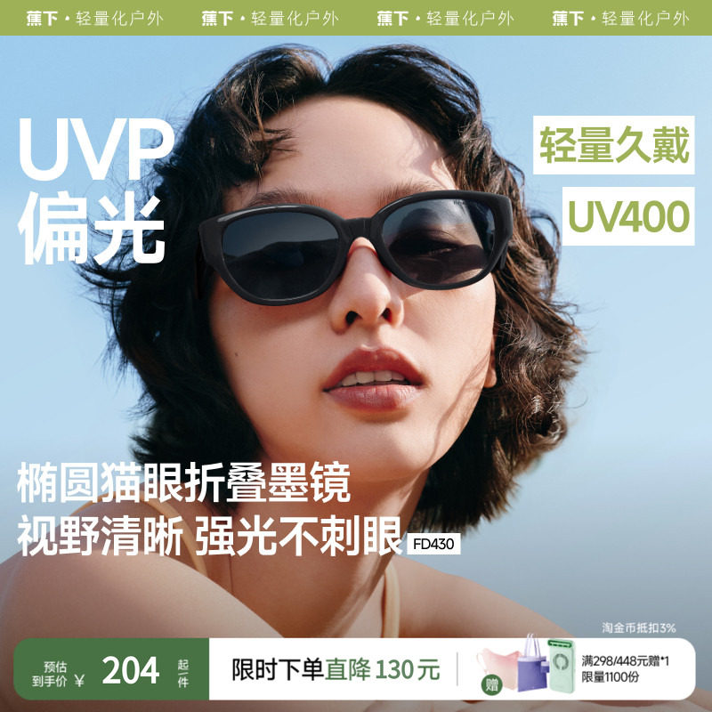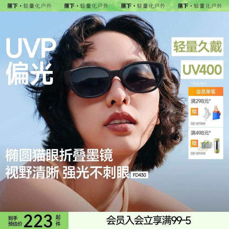 蕉下椭圆猫眼墨镜女偏光复古高级感防紫外线折叠个性小框太阳眼镜