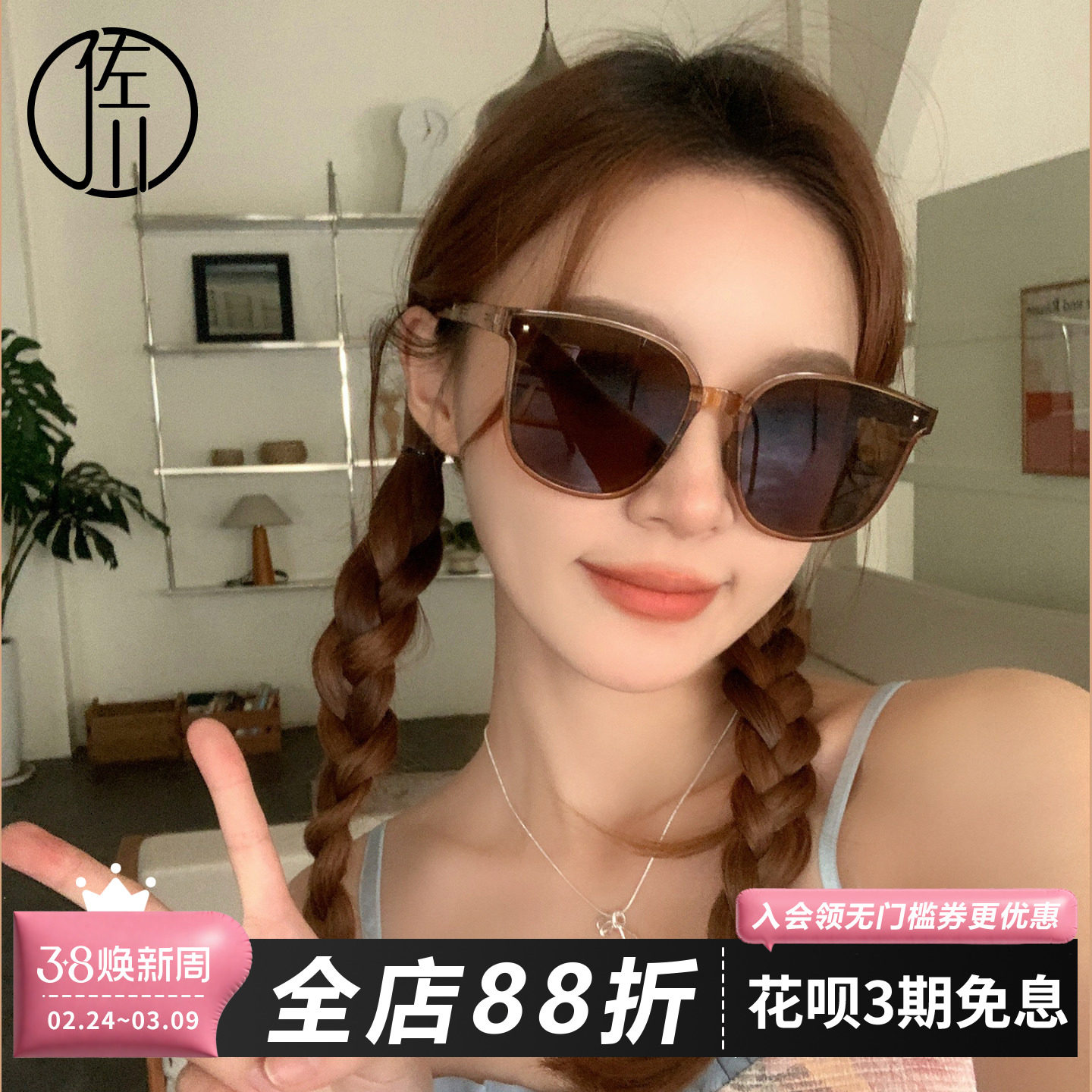 - 圆脸墨镜 女